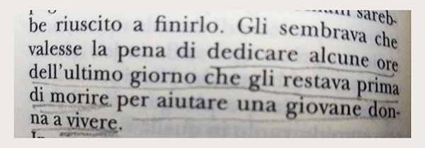 I caratteri della scrittura di Misugi, così grandi che sembravano straripare dalla busta, con i loro tratti fluidi, vigorosi, a prima vista davano una sensazione di forza e abbondanza, ma a osservarli più attentamente notai che da ognuno di essi sembrava emanare un senso di vuoto […]